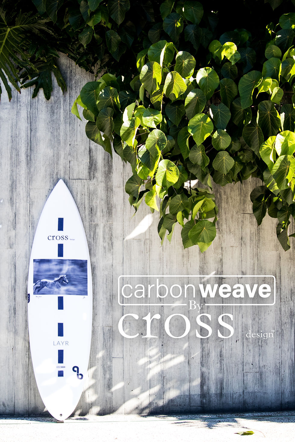 Carbon Weave is a new type of surfboard technology developed by Cross Design in 2019. Carbon Fiber is woven through the core of the stringer-less Expanded Polystyrene (EPS) and held under tension while secured to the face & base of the surfboard. When the Carbon Fiber has set, this creates a much stronger surfboard blank.